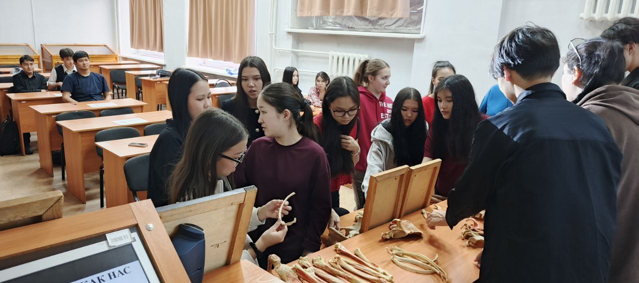 18 ноября в рамках профориентационной работы для школьников Хакасской национальной гимназии-интерната им. Н.Ф. Катанова состоялся мастер-класс по анатомии человека «Скрытая опора: как нас держат кости?», организованный доцентом кафедры биологии Института естественных наук и математики Ириной Николаевной Барсуковой.