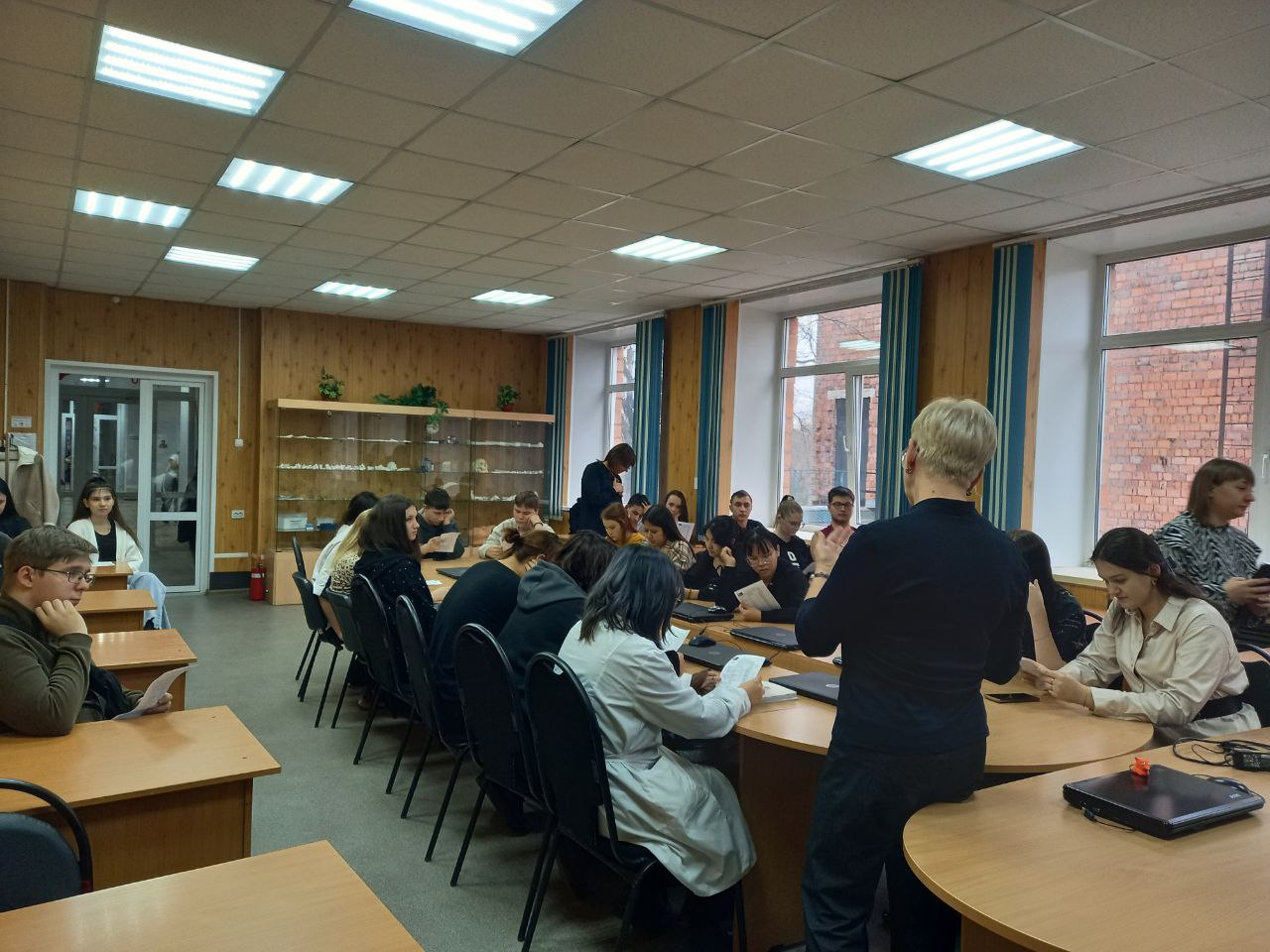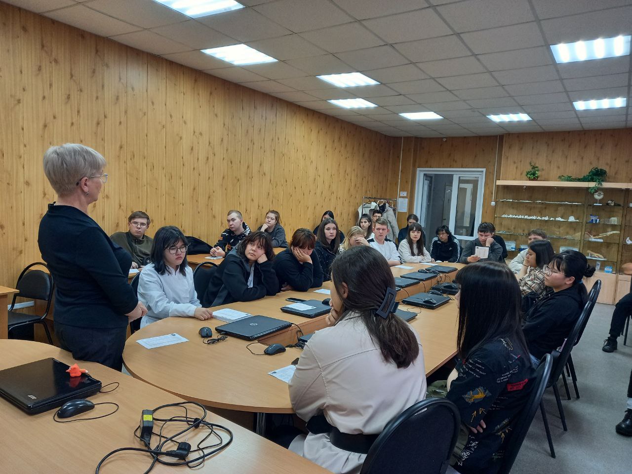 Анастасия Ивановна ознакомила студентов техникума о видах государственной поддержки, которую могут получать студенты вуза, о направлениях научных исследований и о возможностях личностного и профессионального роста обучающихся, о студенческих объединениях ИЕНИМ.