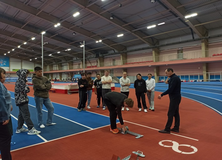 Студенты оценили и покрытие манежа. Оно мягкое, пружинистое и сертифицированное. Есть специальный комплекс для фиксирования хронометража спортсменов и большое табло, которое выводит видео или результаты соревнований. Побывали и в разминочном зале на цокольном этаже, где происходят разминки легкоатлетов перед стартом.