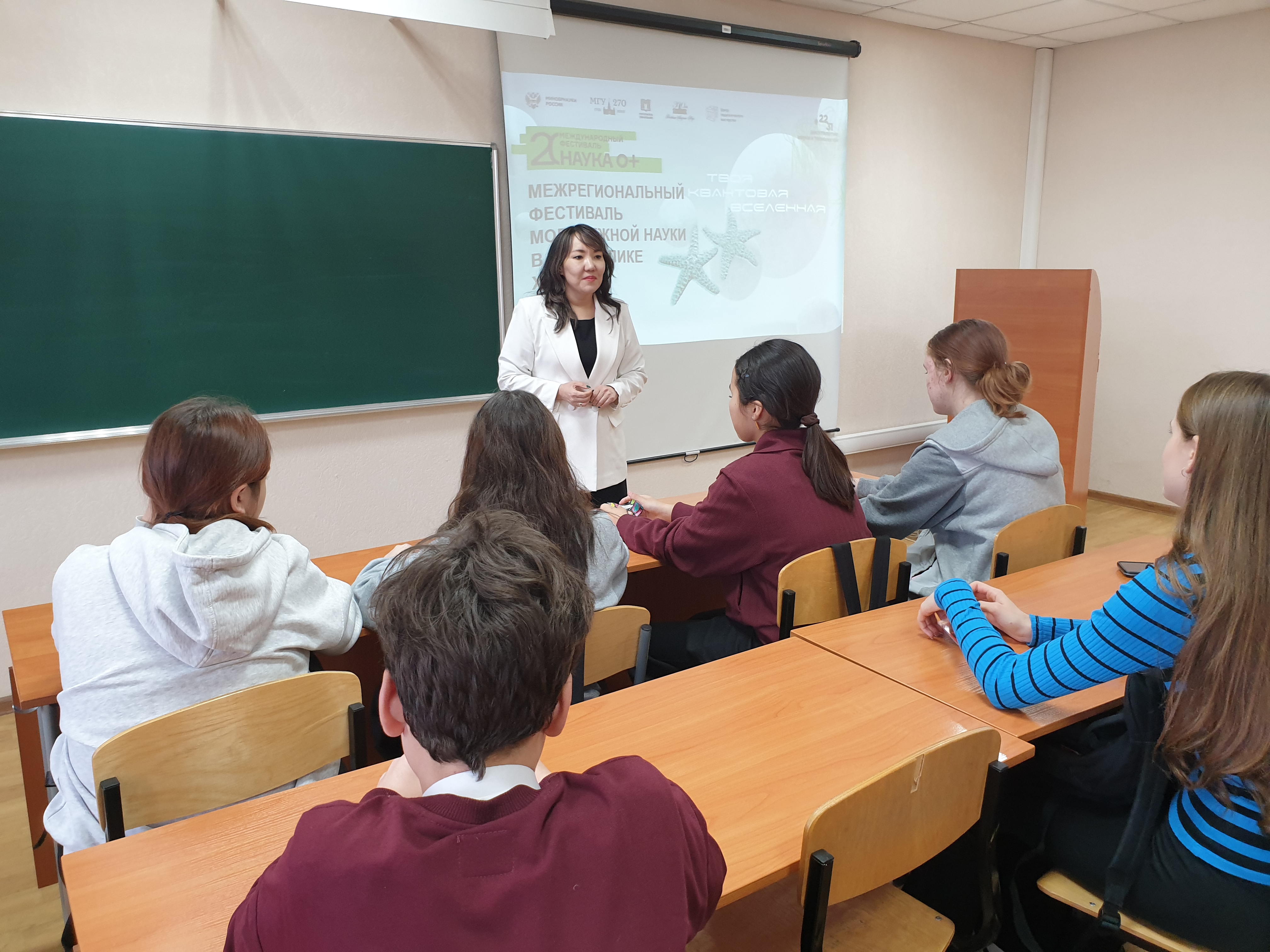 Елена Викторовна Сазанакова, заместитель директора Института естественных наук и математики изложила ребятам основную миссию Всероссийского фестиваля «НАУКА 0+» – популяризация науки среди всех возрастов и создание диалога между наукой и обществом. Диалог достигается путем демонстрации достижений учёных и привлечения внимания к их работе, формирования научного мировоззрения у людей разных возрастов.