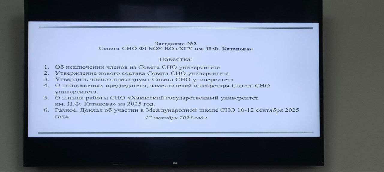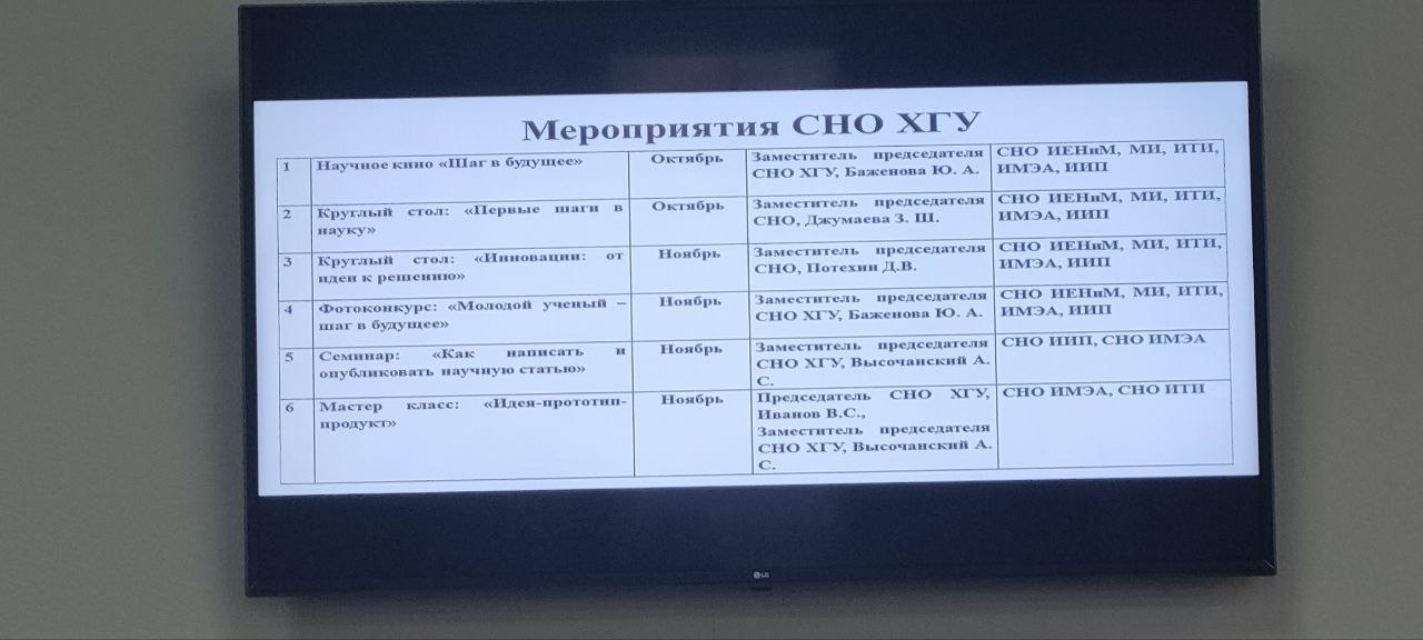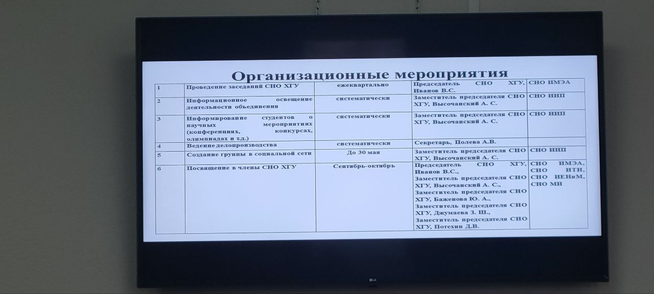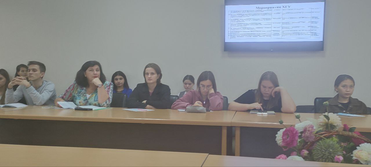 Заседание СНО ХГУ прошло в динамичной и дружеской обстановке. Зарину и Юлию выбрали заместителями председателя Совета СНО ХГУ. Был намечен план работы Совета СНО ХГУ на 2025 год, главной задачей которого является привлечение большего количества студентов к научной деятельности. Особое внимание уделялось вступлению в СНО новых участников – первокурсников.