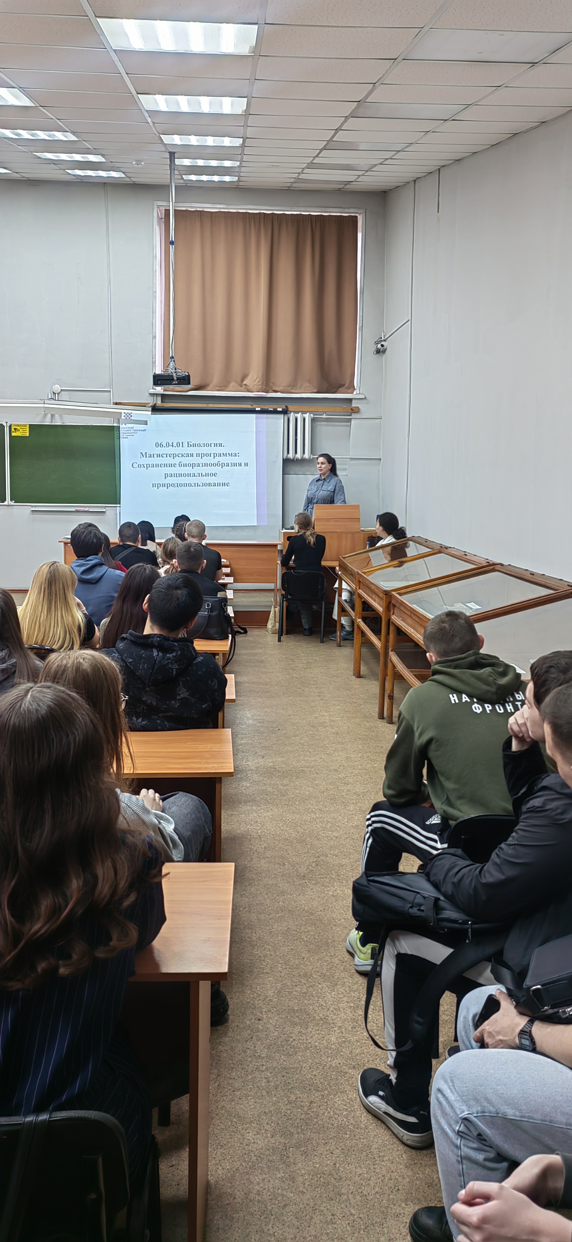 Доцент кафедры биологии, кандидат биологических наук Барсукова Ирина Николаевна, поделилась сведениями о поступлении в магистратуру по очной форме обучения направления подготовки 06.04.01 Биология, направленность (профиль): «Сохранение биоразнообразия и рациональное природопользование». Также она осветила вопрос графика обучения.